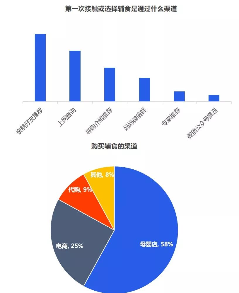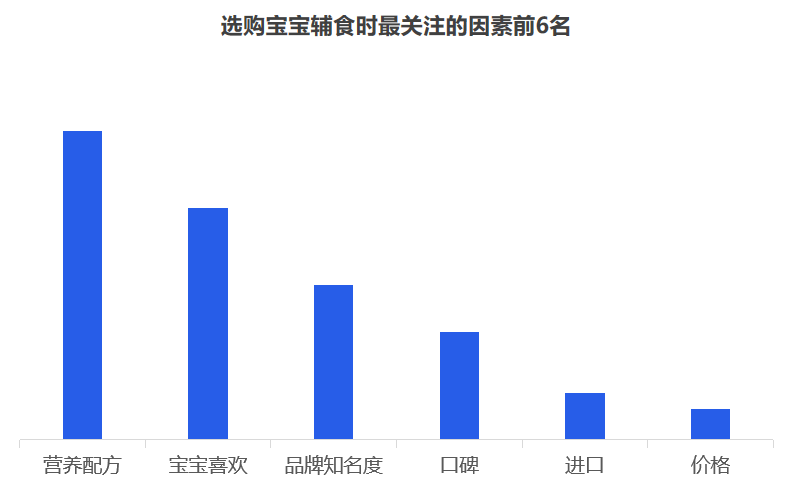 但是對于品牌而言,最重要的是洞察需求,一個好的洞察,一定是清晰揭示消費者的傾向,暗示了一個市場機會。究竟品牌入局輔食的機會有多大,媽媽們是如何看待輔食的? 從當前的嬰幼兒用品的采購情況來看,媽媽負責嬰幼兒用品的采購,用戶占比超七成。奶爸也會經(jīng)常協(xié)助寶媽,參與到嬰幼兒用品的采購活動中,用戶占比為41.7%。 從近一年的百度指數(shù)來看,目前關注輔食最突出的地域是廣州、浙江、江蘇、山東、北京等,可見,當前一二線城市的消費者對輔食的認知教育有所提高,但是低線城市的消費者對寶寶輔食的添加還不重視。 其次,從年齡段來看,“30-39歲”的消費人群對輔食的關注度最高,而在這其中,女性對輔食的關注度遠高于男性。 2019年母嬰行業(yè)觀察通過線上調(diào)研近10000人數(shù)的家長進行了輔食調(diào)查,其中80后占據(jù)24%,85后占據(jù)26%,90后44%,95后4%,對輔食的態(tài)度如下: 1、幾乎所有的媽媽都認為有必要給寶寶添加輔食,并且有一半的媽媽認為要在6個月時添加,而有32%的媽媽認為在6個月-1歲開始添加,還有16%的人在6個月以前就添加輔食。 2、大部分寶寶的輔食來源都是“購買與自制”相結合,而在購買輔食時,媽媽們購買最多的類型依舊是米粉,其次則是餅干、磨牙棒等小食品、營養(yǎng)面等。 3、互聯(lián)網(wǎng)與社交圈對媽媽的購買決策權的影響力較大,據(jù)調(diào)查顯示,媽媽們第一次接觸或選擇輔食大多都是通過親朋好友推薦,上網(wǎng)查詢等。當然消費者在購買嬰兒輔食的渠道選擇上,其實與奶粉并無不同,為了保證產(chǎn)品的質(zhì)量和安全性,同時也為了可以得到育嬰專家的指導和幫助,消費者更傾向于在專業(yè)的母嬰用品連鎖店或主流電商平臺購買食品。 4、隨著85后、90后新生代父母的崛起,他們與父輩的消費觀念并不相同,不再執(zhí)著與于進口與價格等,而是開始關注是營養(yǎng)配方,重要的是寶寶喜歡。 5、對于寶寶而言,自添加輔食開始,都是與奶粉喂養(yǎng)相結合,目前超一半的寶寶每天食用輔食的頻率都是一天兩頓。當然這在一定程度上也決定了每個月在寶寶的輔食上的花費是多少,從月消費來看,可以明顯看出200以內(nèi)的將近半數(shù),當然也可以看出花費在300以上的有21%,可見,對于嬰兒食品這個特殊的品類,以及嬰幼兒這個特殊的消費人群,消費持續(xù)升級仍然明顯。近兩年來,嬰幼兒輔食高端化、有機化趨勢明顯。 近幾年來,越來越多的媽媽意識到輔食的重要性,隨著我國居民可支配的收入不斷提高,消費者投入了更多的關注給自己的孩子,作為寶寶的第二餐,消費者愿意投入更多費用,使用周期會不斷變長,且更注重輔食產(chǎn)品的品質(zhì)和質(zhì)量??梢婋S著消費水平的提升,年輕父母對于對孩子的飲食質(zhì)量、飲食營養(yǎng)的投入更加重視,會更追求高附加值、高品質(zhì)的輔食,中國輔食市場會繼續(xù)高速發(fā)展。