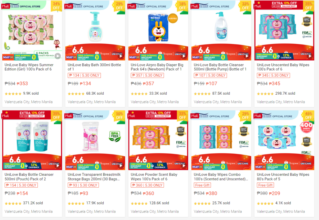由于該品牌入局較早,有了一定的粉絲基礎(chǔ),以及品牌影響力,所以在shopee和TikTok Shop平臺(tái)銷量可觀,品牌將旗下的產(chǎn)品分割成不同的子品牌,便于寶媽消費(fèi)者查看用品,而shopee站點(diǎn)的首頁可以發(fā)現(xiàn),該品牌目前推出多種活動(dòng),并且近期正在準(zhǔn)備shopee的6.6大促。