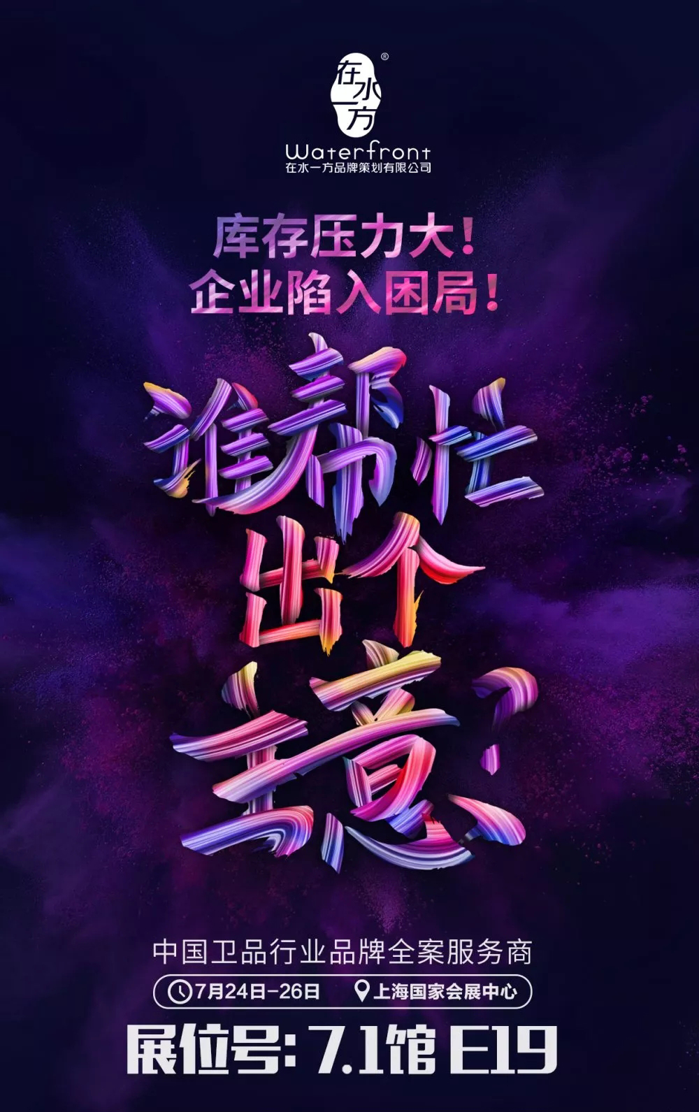 7月24日到26日,如果你剛好有空,在水一方誠意邀你到上海國家會展中心7-1E19展位坐坐,一同交流行業(yè)觀點,碰撞創(chuàng)意,展望新機。